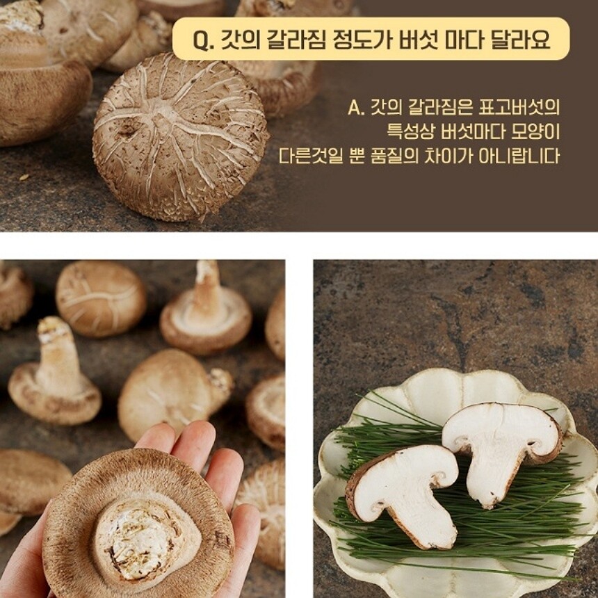 일반품의 표고버섯은 갓의 벌어짐이 있을수 있고,